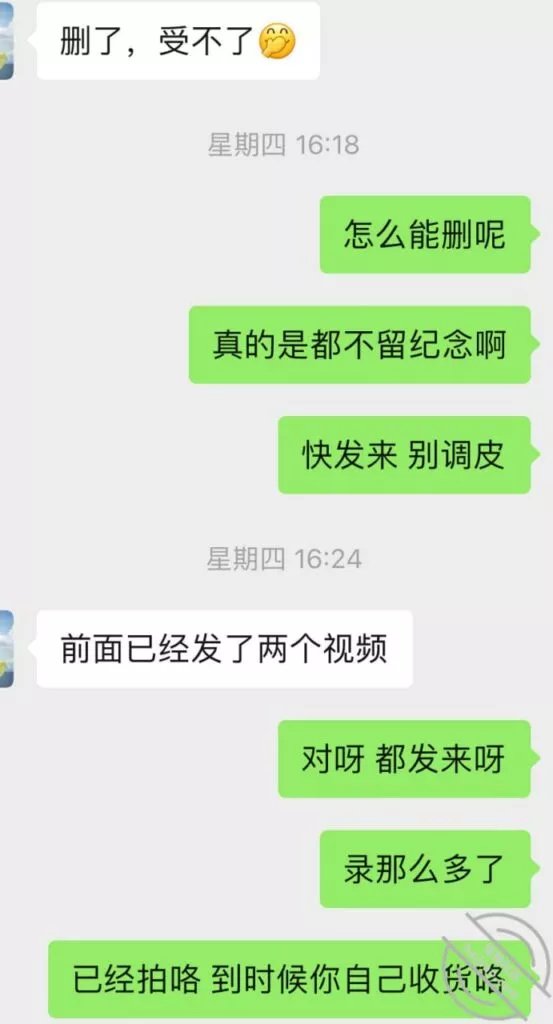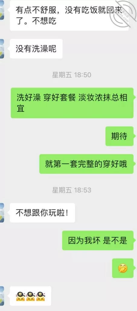 时间来到第三次前,又开始撩搔和我,我就提前撩到让她穿丝袜情趣等拍照,但是她还是没有答应,理解不了说年轻人的癖好,我直接就把我喜欢类型的情趣链接发给她让她去看选择,而后果然也是当她聊完就买了不同款式三套,并且我侧面和她聊拍照录像,因为她总是想纪念我一次顺水推舟和她说第三次要进行拍照录视频让她放开。