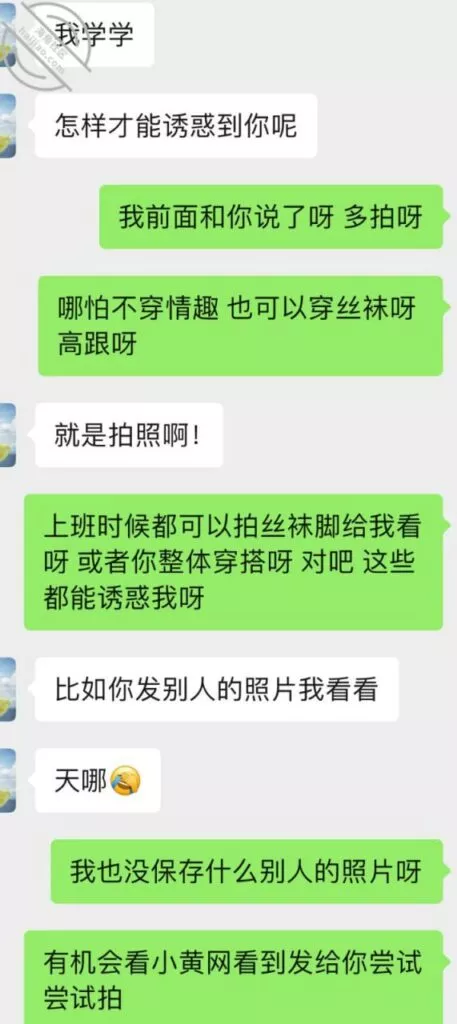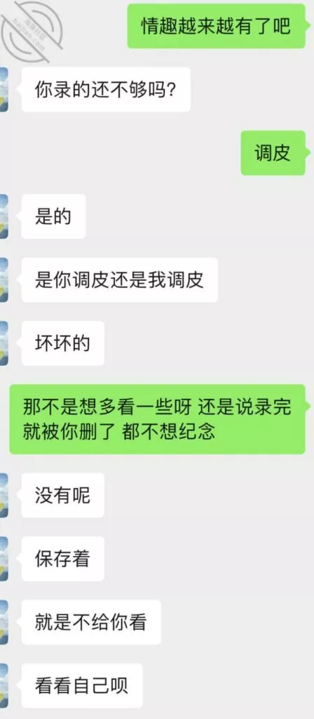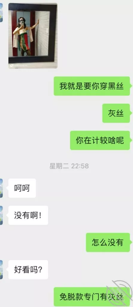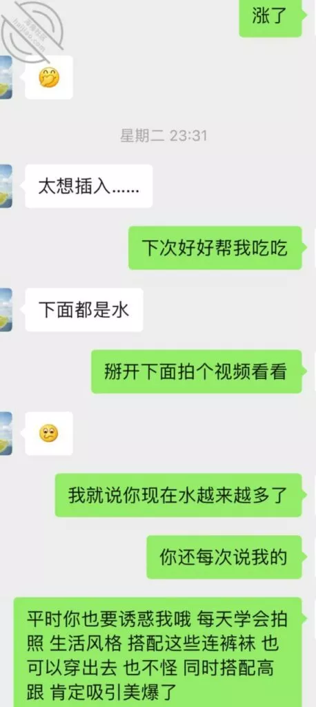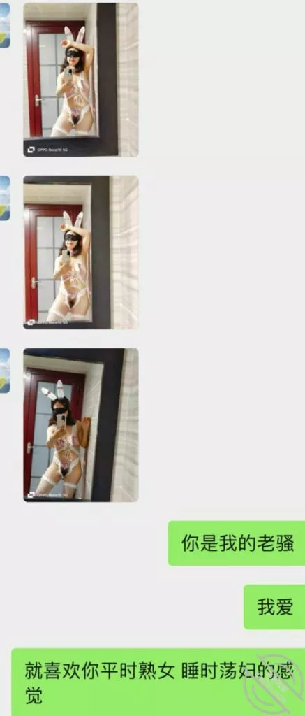 不过第三次虽然也没成功拍到照片和视频但是她开始松口至少穿情趣了而且在我引导下还主动给我发照片看,按后来她说 穿上情趣看自己照片 自己下面都受不了并且说第一次干涩 第二次有点水,那么第三次直接是润滑到极限,被我撩搔的不行不行,想到下面现在就会湿润。