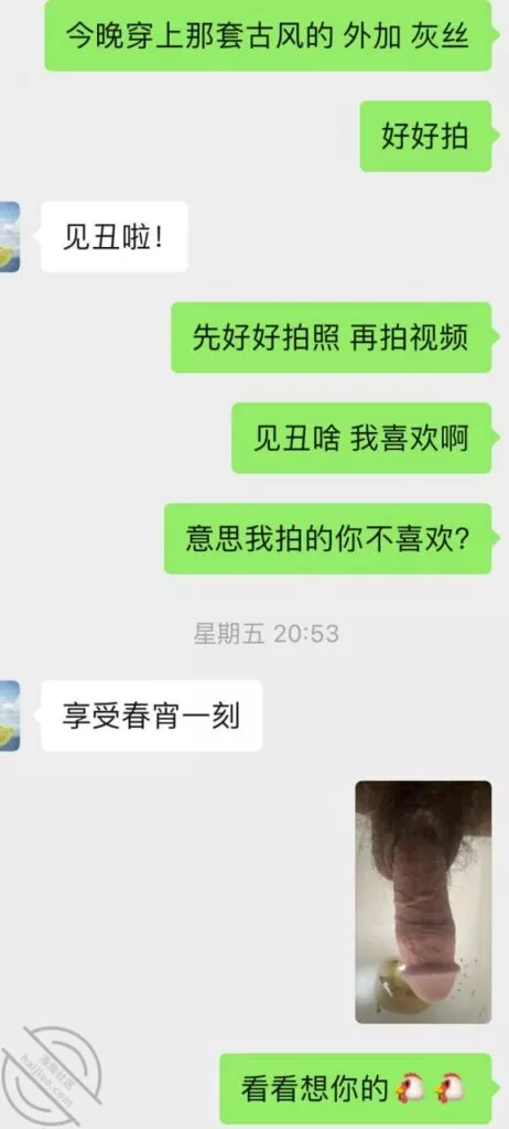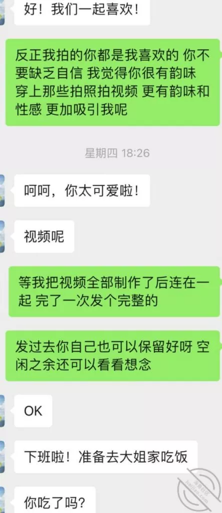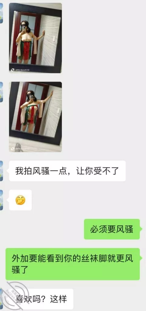 这一次她自己都体会到,拍给我的时候要越来越搔才能更诱惑我,所以这次自拍的比前几次自拍要好很多,的确是看着这老熟女利姐都不能自拔。多说无益,上聊天记录