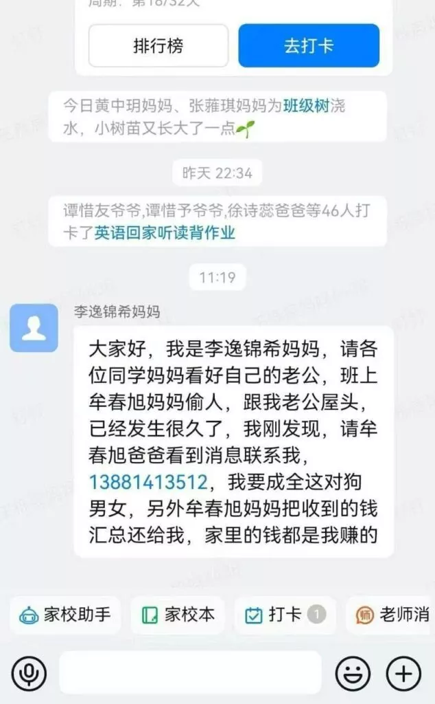 四川自贡市苗苗幼儿园家长群曝光软饭男搞外遇群聊点名小三