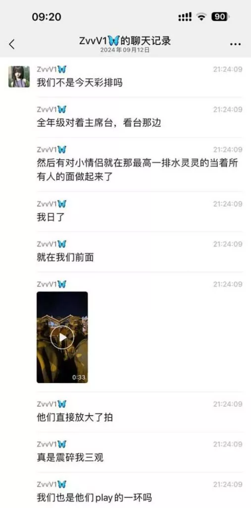 在云南民族大学的Cao场上,大一新生们正在进行彩排。黄昏时分,众多在校大学生自发聚集在看台上,目睹这场新生的彩排。不料,一对胆大的在校生情侣在看台上竟然大方地亲昵起来,甚至进行了亲密行为。全程均被正在排练的新生们看到,这一幕让人感到既惊讶又尴尬。