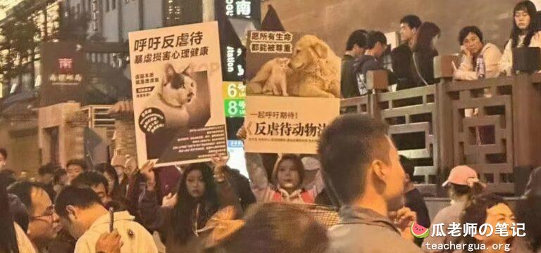 河北石家庄,有人举牌呼吁保护动物反极端控制。