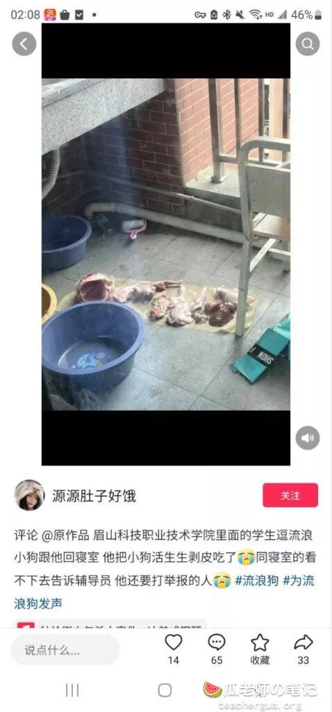 眉山科技职业学院,抓了一只狗活剥了吃了。