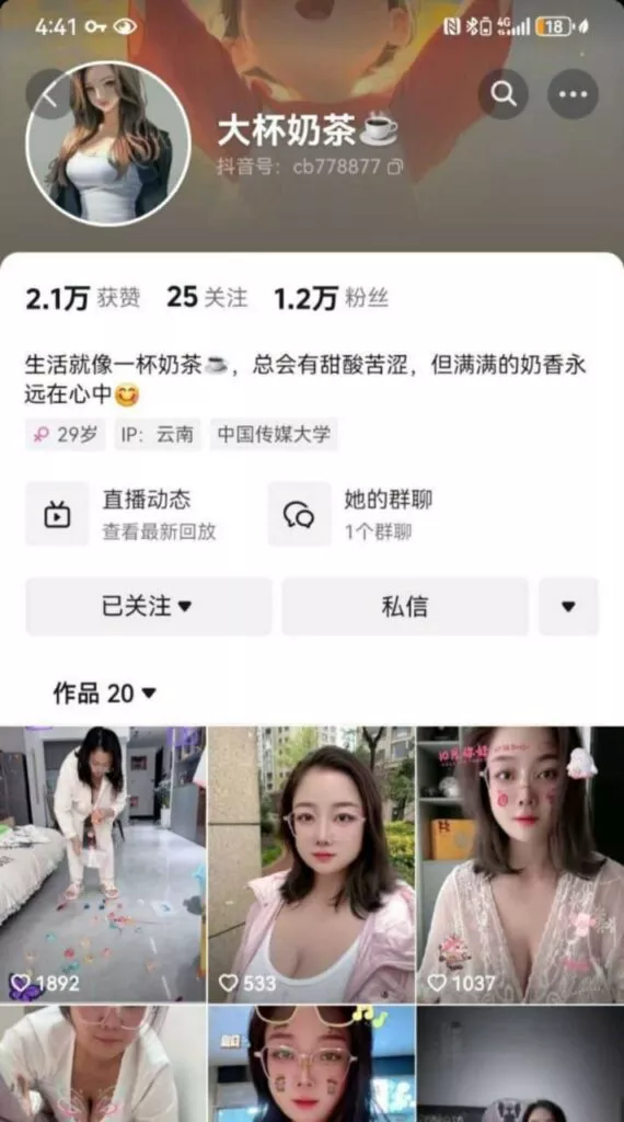 抖音上的一位巨扔小网红,以她的大杯扔茶而闻名。正如她的名字所示,确实拥有丰满的身材。她的日常作品中,时不时流露出若隐若现的扔沟,仿佛是一道深邃的迷雾,让人一眼望去就仿佛陷入其中,难以自拔。此外,她还分享了一些粉丝福利的大尺度视频,备受关注。