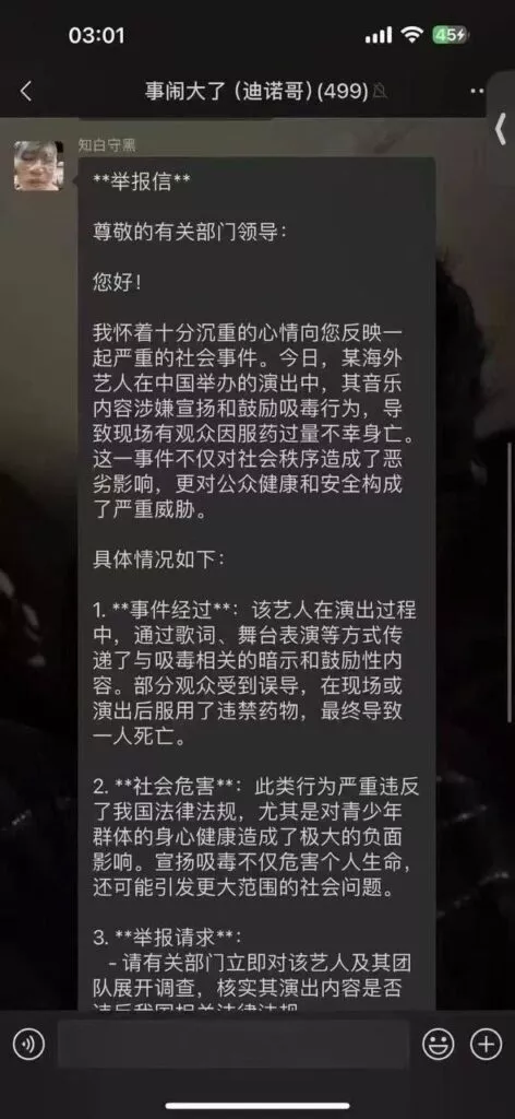 在广州的演唱会中,美国颓废风说唱歌手2hollis通过歌词和舞台表演等多种形式传达了与吸毒相关的暗示和鼓励性内容。这些信息误导了部分观众,导致他们在现场或演出结束后选择服用违禁药物,最终因为嗑药过量酿成了悲剧,造成一人死亡。