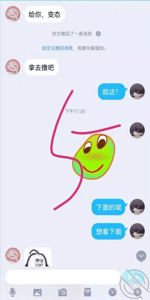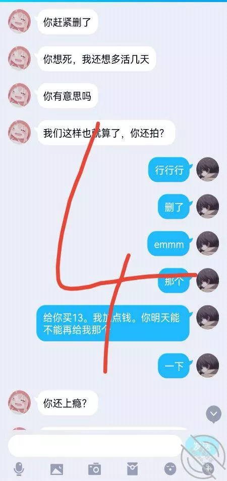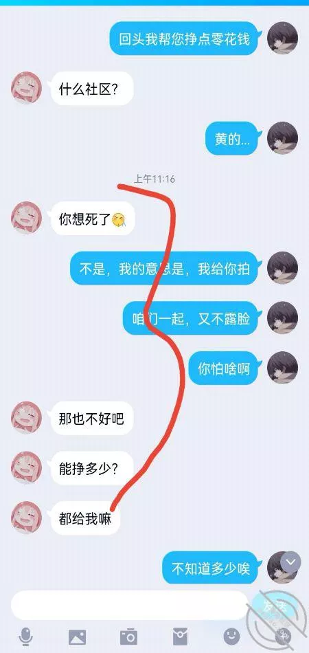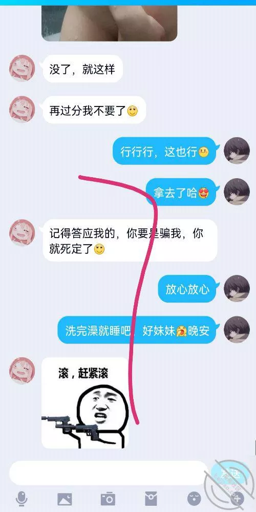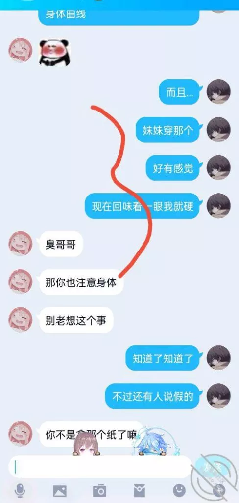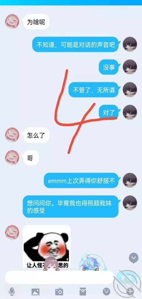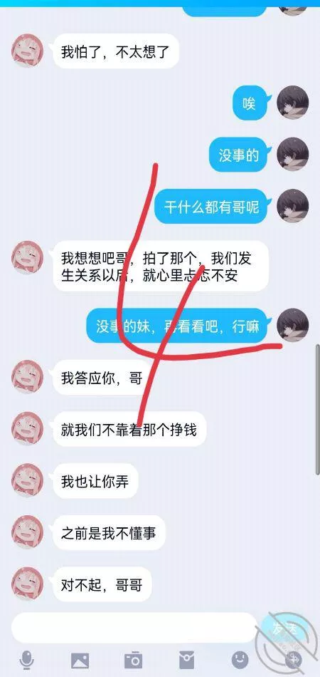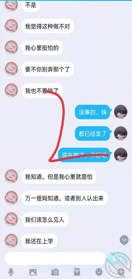 就怕细长,都能爽不就行了,回来以后又跟妹妹聊了聊。也没看明白她的态度,也不知道有没有机会了,实在不行还是拿钱吧,毕竟除了这个,别的也不知道怎么能把她搞到手。聊天记录奉上