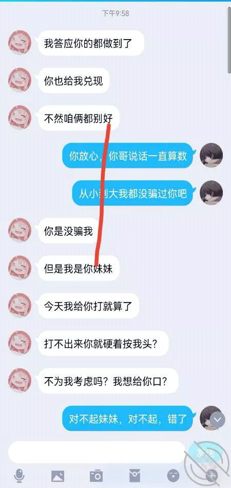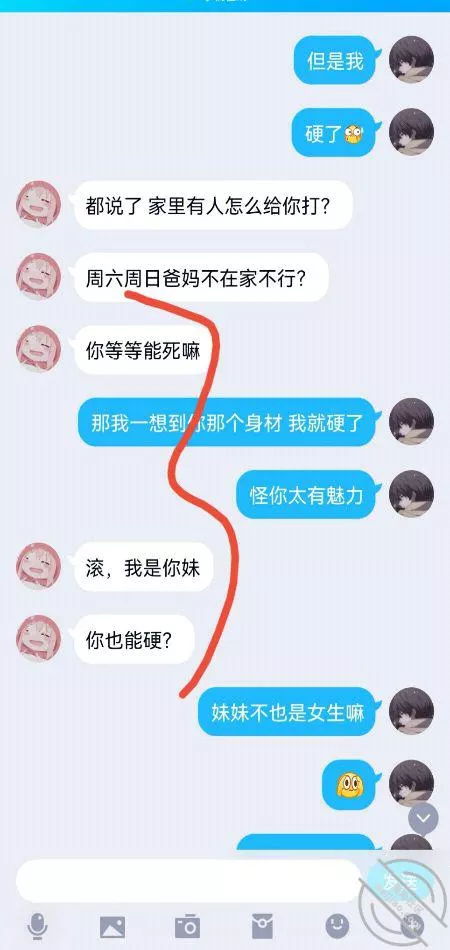 看妹妹的样子还是有点心动的,下一步等她回来就好好给她聊聊,前两个图片是角度不好吧,你们觉得我太小,等我把妹妹搞到手就让你们看看,我纯正细长,让你们说的我好无语哦,附上和老妹的聊天记录。我觉得行,我也和妹妹好好聊聊心,之前她对我还是很乖很听话,可能是我之前要求太过分了吧