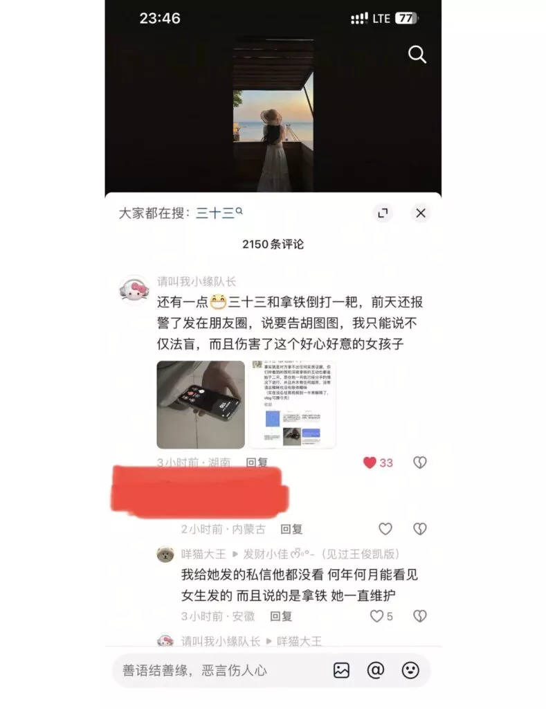 先提车后分手,抖音40万粉丝清纯网红三十三,打着一手清纯好女孩的人设,实际非常拜金,周旋于数个男人之间,卖弄清纯人设,利用完后果断丢弃,甚至伪造事实,引导粉丝网暴前男友。