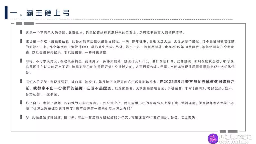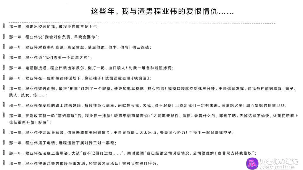 女子在现场丢出多分PPT试图揭露这位人渣,瓜老师找了很久才找到现场这位女子散发的PPT内容的原件,长达113页,这个瓜相当劲爆结实,记得喝点水