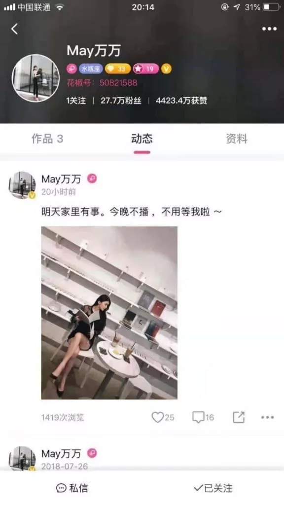 抖音微博高颜值擦边网红御姐may万万,一双长腿成功拿下榜一大哥,略施小计就把大哥的胃口打开,大尺度一对一果聊视频流出