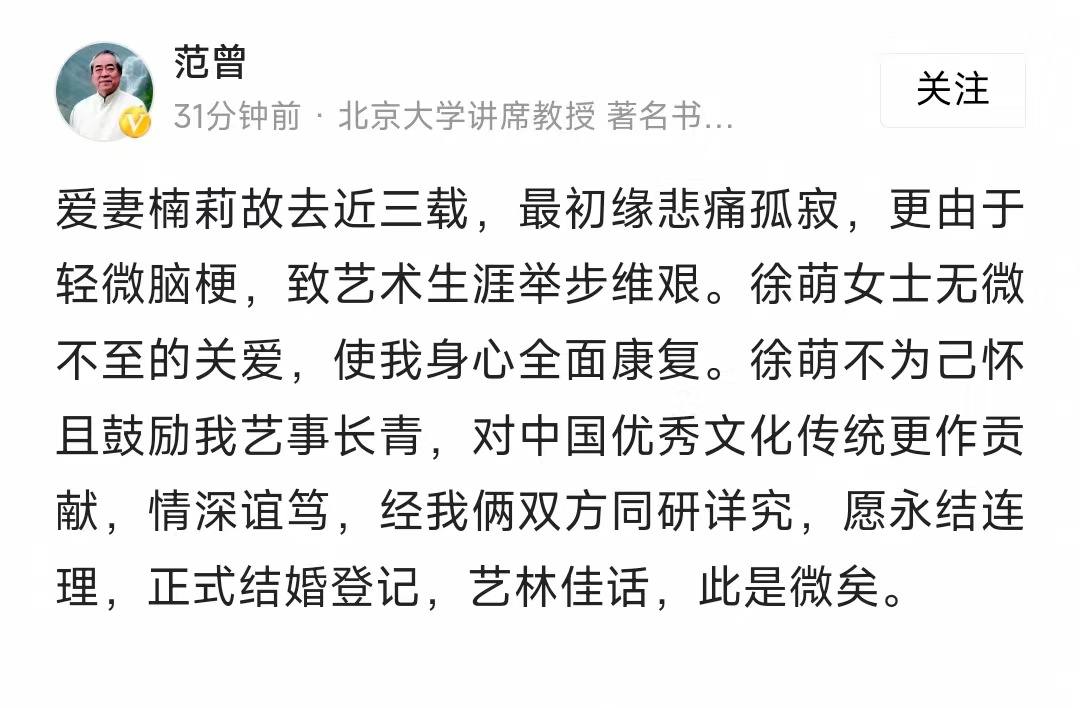 书画大师范曾被传失恋?小50岁岁娇妻徐萌被指出轨伙同情夫盗取20亿家产