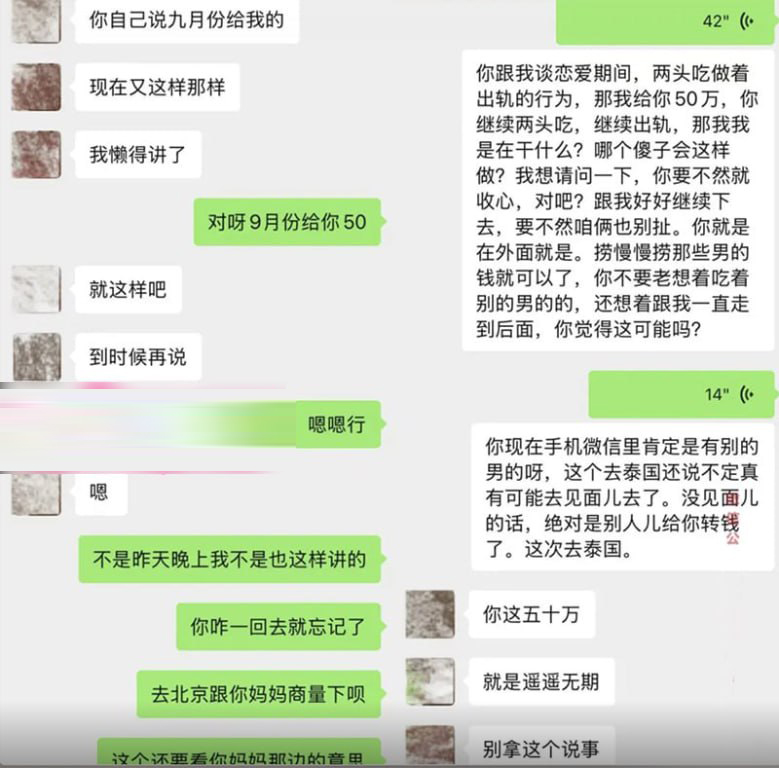抖音58万粉丝清纯女神丘隹亘被男友爆料,在与其恋爱期间多次长期与不知名男子以及榜一大哥保持暧昧关系,长期pua男友捞金,多次谎称与小姐妹出游,实际与金主私会多人运动。
