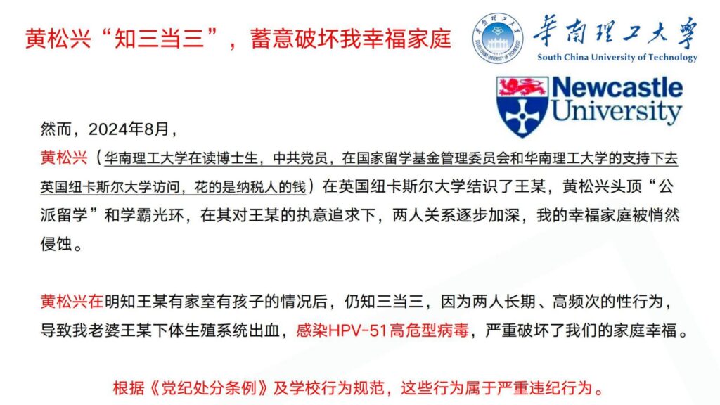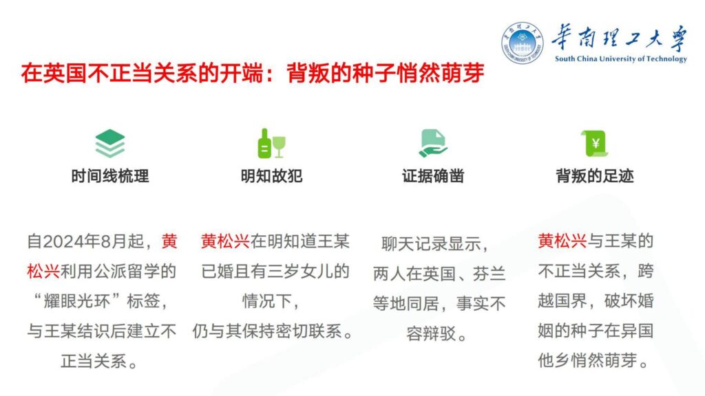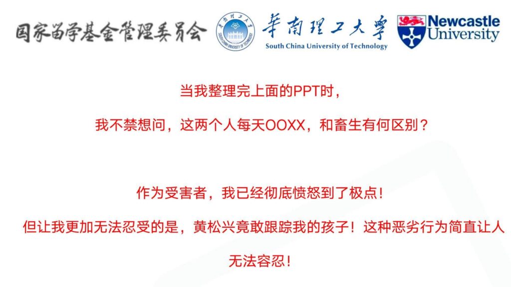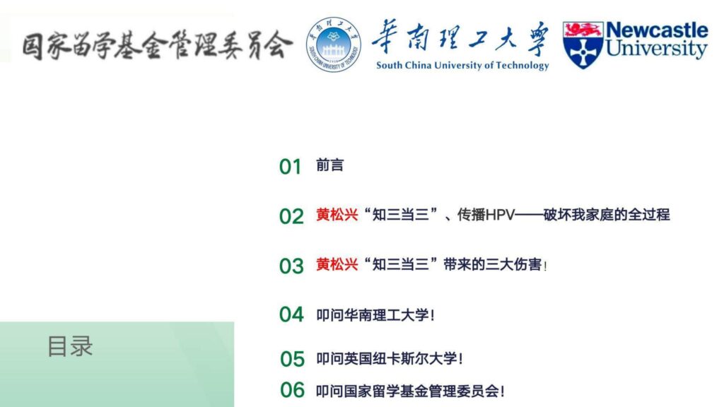 超长ppt痛斥渣男渣女,苦主辛辛苦苦卖掉房产支持自己的妻子出轨留学,没想到竟然背弃家庭和孩子出轨,华南理工大学公派留学生黄松兴知三当三,两人高强度doi惹来性病,竟然还要苦主买单。