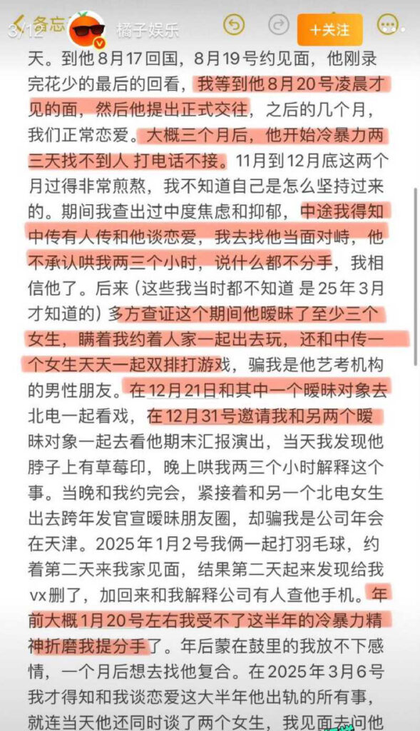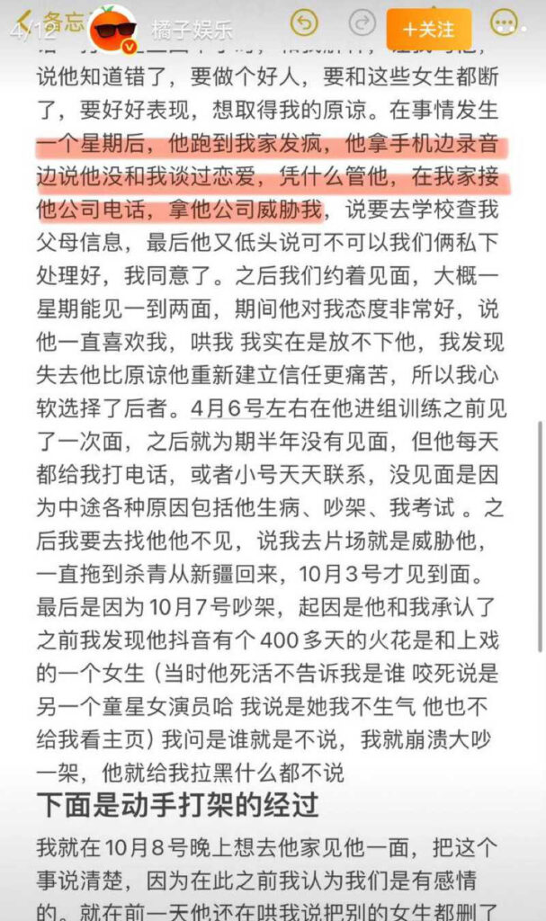 内娱小鲜肉荣梓杉被女友李禹熹爆料出轨家暴大尺度视频流窜网络