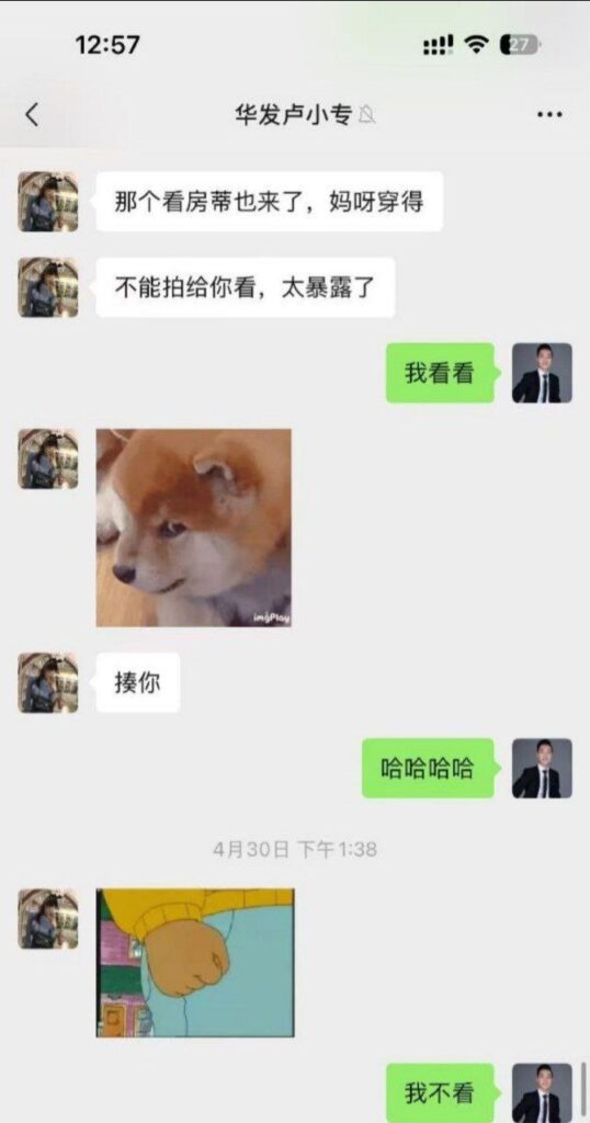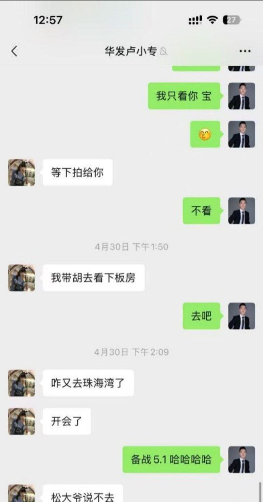 华发集团男高管婚内出轨,营销部女销售卢小专知三当三,家花不如野花香,但正宫也不是吃素的,歼情被发现后露骨聊天记录随之曝光。