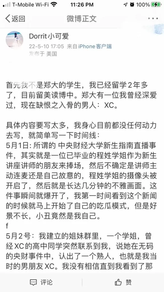 事件本以为只是一个寻常的意外事件,但一位远在美国留学的学姐的突然发声,让这个简单的时间变得复杂起来。这位远在美国留学的学姐,突然发现视频中的男主竟然是自己的男友xc