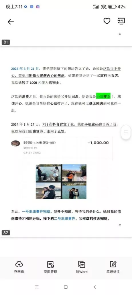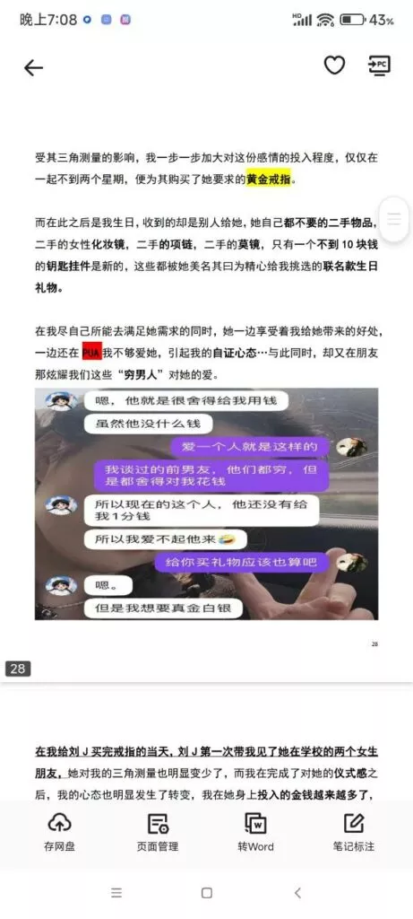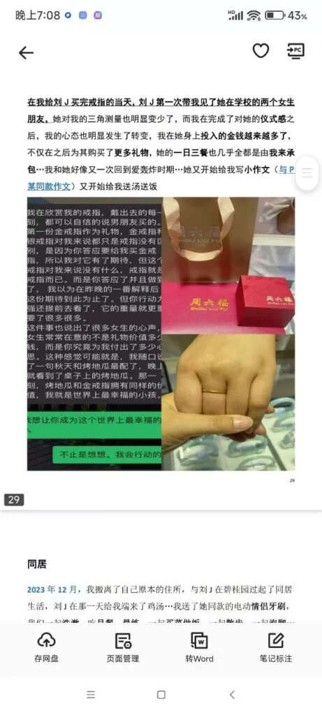 2024年度大事件,一份长达183页的,总共有4万多字的PPT文刷爆网络。文中用详尽的事实亲身经历,狠狠地批判了一位宜春学院21级E班刘姓的女生。这位女生堪称是顶级时间管理大师,同时交往多位男生,为满足自己私欲不停地pua苦主,掏空钱包,私底下出轨劈pua,早年间甚至吸引高中老师做i怂恿自己嫂子离婚。