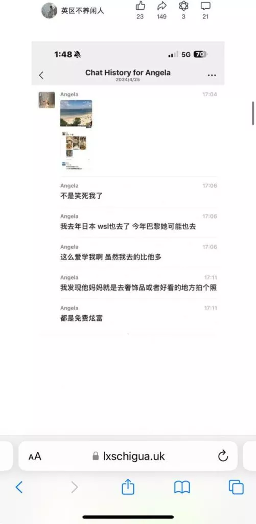 李湘的女儿王诗龄目前在英国留学,她的好友Angela最近卷入了一场广泛关注的绯闻。传言称,Angela背叛了多位朋友,并被曝光参与了多项不当行为,其中包括充当“福利姬”、以高价向国内客户出售服务,甚至为外国人提供免费的服务。这一连串的爆料引发了激烈的讨论,舆论瞬间沸腾。