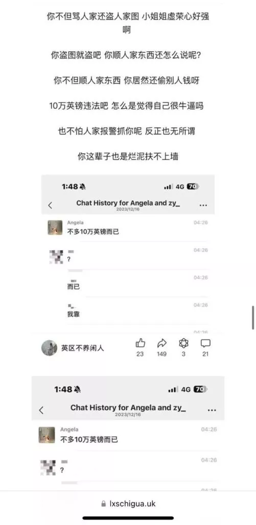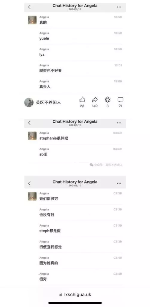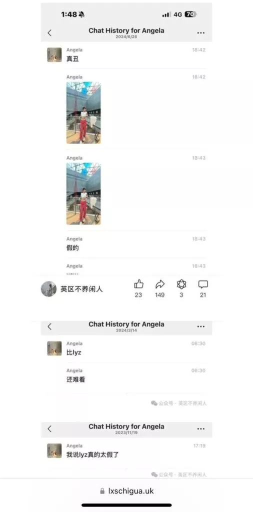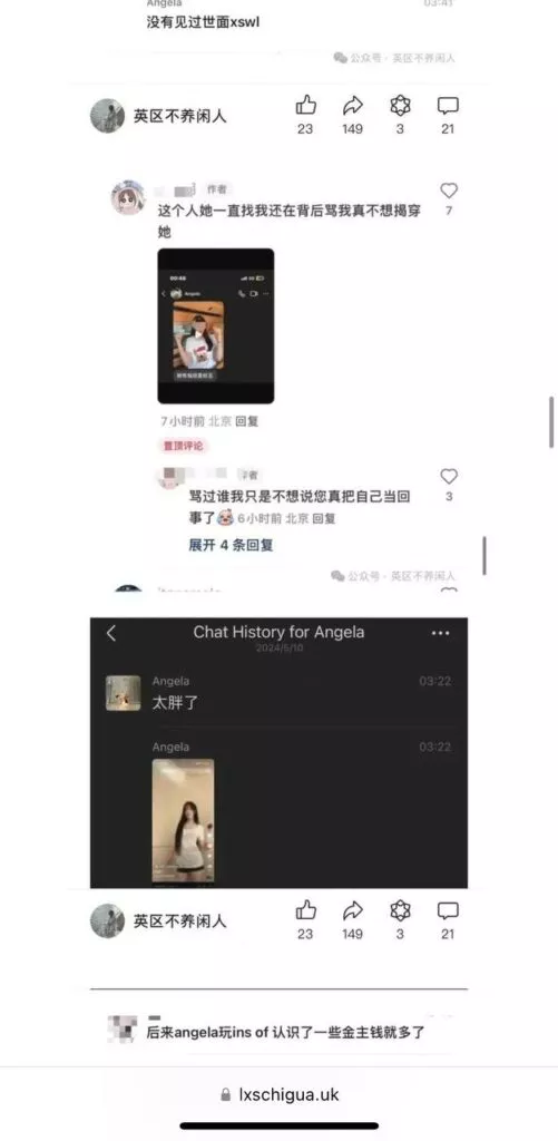 关于这位Angela,瓜老师也是找到了这位渣女残留的信息和大尺度照片,看来是没有删干净