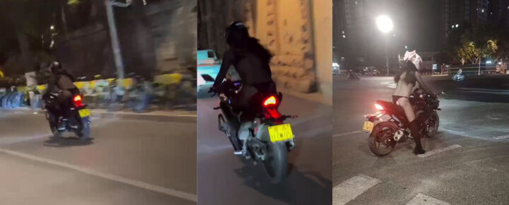 暗夜女骑?深夜济南街头炸裂女骑全身黑丝炸街出行