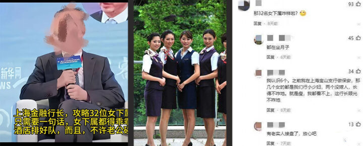 内地金融圈史诗级大瓜!上海工商银行行长顾国明被曝后宫佳丽32人